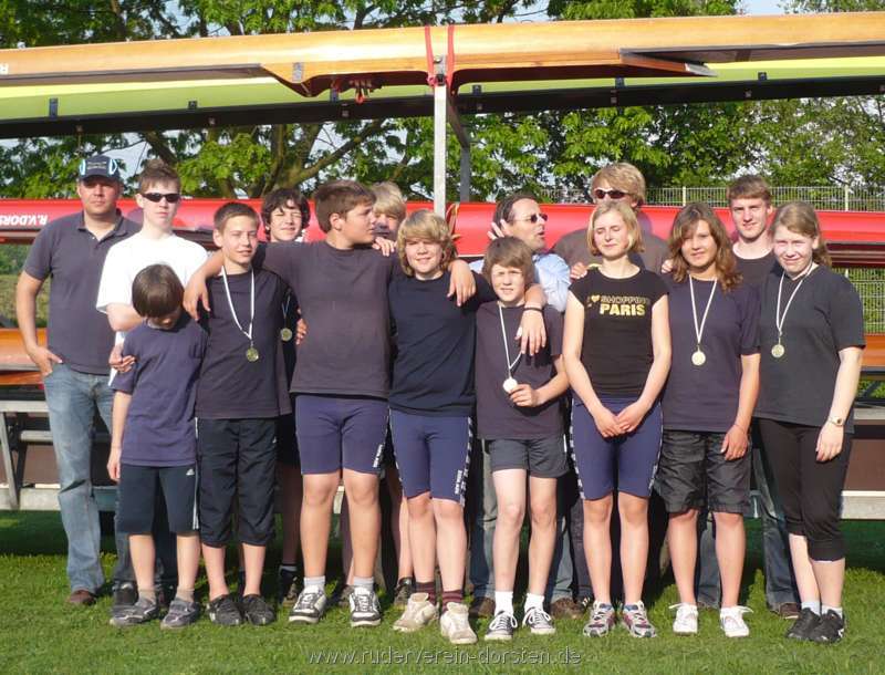 Die erste Kinderregatta fand wie jedes Jahr am ersten Mai in Oberhausen statt. Die 10 Jungs und Mädels fanden sich um 8:30 Uhr in Oberhausen an der Regattastrecke ein. Um halbzehn gingen die beiden Juniorinnen Justine David und Sarah Schlautmann (beide Jahrgang 1993) an den Start. Justine belegte auf ihrer ersten Regatta einen guten dritten Platz. Sarah besiegte ihre Gegnerinnen mit einem Start-Ziel-Sieg.