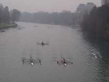 Bilder vom Training am Samstag Samstag wurde ab 8 Uhr das Boot aufgetrimmt und eingestellt, zu Mittag gegessen und trainiert. Zwischendurch hatten wir noch Zeit, die Stadt Turin im Sonnenschein und bei gefühlten 20 Grad zu besichtigen. Nachdem die Einer, Zweier und Vierer am Samstag über die Strecke gegangen sind, konnten wir für das Rennen am Sonntag noch einmal trainieren.