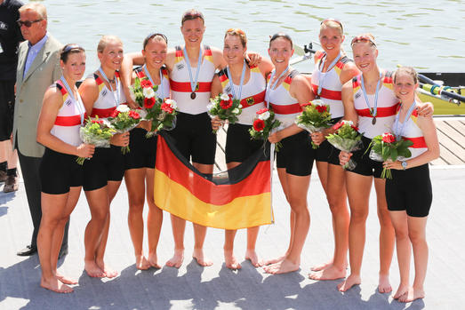 Dieser Satz beschreibt das Geschehene bei der U23 WM in Linz-Ottensheim absolut treffend. Seit Jahren deutete sich das Talent von Charlotte Reinhardt und Jason Osborne immer wieder an: Topleistungen auf dem Ergo, nationale Titel - nun endlich gab es Edelmetall bei Weltmeisterschaften. Als am Sonntagmittag um 12:35 der deutsche U23 Frauenachter als drittes Boot über die Ziellinie ging, kannte der Jubel im Boot keine Grenzen mehr. Arme gingen hoch, Wasser spritze und sicher floss die eine oder andere Träne. Mit über sieben Sekunden vor den Verfolgerinnen aus Australien schob sich der Achter mit Johanna te Neues, Juliane Bosse, Elisaveta Sokolkova, Alexandra Höffgen, Anne Dietrich, Lea Kühne, Charlotte Reinhardt, Schlagfrau Marisa Staelberg und Steuerfrau Inga Thöne bei sommerlichen Temperaturen von 40°C! über die Ziellinie.