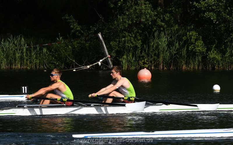 Der Landeswettbewerb im Jungen- und Mädchenrudern für 12- bis 14-jährige fand wie gewohnt in diesem Jahr beim landschaftlich sehr schön gelegenen Ruderverein in Bochum-Witten statt. Der Ruderverein Dorsten schickte seine stärksten 14-jährigen mit dem Doppelzweier Johannes Benien und Tobias Strangemann sowie im Einer Jakob Enbergs in den Wettkampf. Die beiden Erstplazierten nehmen dann im September beim Bundeswettbewerb in München-Oberschleißheim mit dem NRW-Team teil.