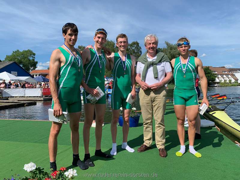 Unter den Augen des zweifachen Olympiamedaillengewinners Thorsten Streppelhoff, der als letzter Dorstener vor 23 Jahren im Deutschlandachter saß und auf Heimatbesuch bei seinen Eltern in Dorsten weilte, siegten Christopher Reinhardt (Dorsten), Laurits Follert (Krefeld), Johannes Weißenfeld (Herdecke), Malte Jakschik (Castrop-Rauxel), Torben Johanesen (Hamburg), Jakob Schneider (Essen), Hannes Ocik (Rostock), Richard Schmidt (Trier) und Steuermann Martin Sauer (Berlin) souverän im Vorlauf vor den Booten von Oxford Brooks 1, Oxford Brooks 2, Deutschland U23 und Oxford Brooks 3. Im Finale musste Malte Jakschik krankheitsbedingt passen und wurde durch Paul Gebauer (Potsdam) ersetzt. Dieser musste auch am Sonntag für Jakschik einspringen.