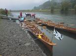 Montag, zweite Etappe, Ziel war unser Quartier in Polle. Es fing an wie es aufhörte und blieb so: leichter Regen ohne Ende. Dennoch hat es Spaß gemacht. Beim Ruderverein Höxter konnten wir im Trockenen ein üppiges Picknick-Buffet plündern, dass der Landdienst vorbildlich beschafft hatte. Bald ging es feucht weiter. Nur gut, dass wir uns aus den Booten rasch unter die warme Dusche flüchten und einen gemütlichen Abend genießen durften.