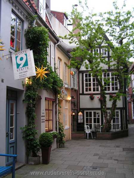 In Bremen machten wir einen schönen Stadtrundgang. Dann wurden wir von Inge in das Schnoor-Viertel geführt. Es ist sehr beeindruckend mit vielen kleinen historischen engen Gässchen, kleinen Läden und Restaurants. Ziel war eigentlich die "Schlachte", die berühmte Kneipenzeile von Bremen.