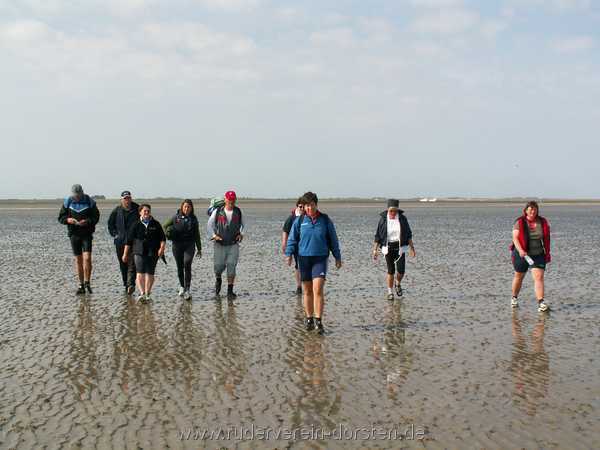 After 3 days enjoyable rowing what was left for the Sunday was for some the Icing on the Cake and for others a small nightmare. However I think for all of us it was a memory and experience that with at least hindsight we will never forget and indeed for most of us was in fact enjoyable. It was a 'Watt Wanderung'. I had no idea what this was but was informed it is a stroll along the beach. Never believe any tour guides from Emden Rowing Verein! They are known to tell half truths!