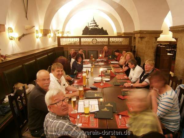 Der Abend in Meißen war "zur freien Verfügung", ohne reserviertes Lokal oder sonstige geplante Aktivität. Das Ergebnis war, dass 16 von 20 Ruderern sich in derselben Pizzeria in der Meißener Altstadt wiederfanden. Im urigen Gastraum der Herberge Orange, die wir für uns alleine gemietet hatten, konnte noch ein letzter Gerstensaft zum Schlafen eingenommen werden - überwiegend zufrieden bei der Vorstellung, dass wir einen Ruhetag vor uns hatten.