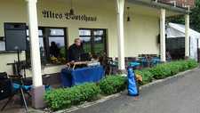 Das Wetter bescherte uns morgens zunächst kühlen Regen, der mit der Zeit aber nachließ. Wir marschierten zum Torgauer Ruderverein, wo mit lauter Musik in der dortigen Wirtschaft der "Männertag" vorbereitet wurde. Was bei uns der "Vatertag" ist, scheint im Osten der "Männertag" zu sein. Bei dem Volk, was in der Regel draußen unterwegs ist, um diesen Tag zu begehen, scheint mir diese Bezeichnung wesentlich ehrlicher!