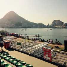 Rein "zufällig" hatte uns Reiseleiter Thomas im Mannschaftshotel des Deutschen Ruderverbands untergebracht, allerdings in einem anderen Teil des Gebäudes. Da dort aber neben den Deutschen Ruderern auch noch weitere Nationen und Angehörige untergebracht waren, fielen wir Regattatouristen kaum auf. Da das Einchecken morgens um 07:00 Uhr nicht möglich war, kamen wir zunächst im Krankenzimmer der DRV Mannschaft unter, welches noch unbenutzt war und uns die Möglichkeit zur Morgentoilette gab. Frisch und voller Tatendrang ging es dann zur Strecke an die Laguna Rodrigo de Freitas, unter den Cariocas (Einwohner Rios) einfach Lagoa genannt. Wir entschieden uns für ein Taxi, welches für kleines Geld (etwa 20 R$) unser Ziel anfuhr. Ausgerüstet mit Kamera und Eintrittskarten ging es dann auf die Tribüne, auf der wir eigens reservierte Plätze im FISA Familiy & Friends Bereich reserviert hatten.