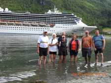 Flåm erwartete uns mit einem flachen Strand und dem Anblick eines großen Kreuzfahrtschiffes. Das sollte nicht der einzige Fremdkörper dieser Art an diesen Tagen hier sein. Es blieben aber auch keine Fragen offen, was hier zählt und wovon die Region lebt - dort nimmt man die permanent vom Schiffsdiesel geschwängerte Luft im Talkessel in Kauf. Schade, denn eigentlich ist es ein herrlicher Flecken. So übernachteten wir in Hütten auf dem schönen Campingplatz am Ort. In nächtlicher Windstille trat ich mal vor die Tür und stand im Dieselmief :-( Ich mag reiselustigen Lesern nur raten: fahrt hin, aber bitte nicht mit dem Kreuzfahrtschiff.