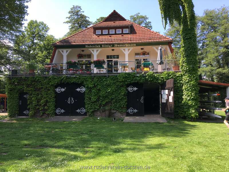 Sonnabend sollte dann - wie am Dienstag zuvor - mehr Urlaub sein. Wir fuhren nur eine kurze Tour (19 km) auf direktem Weg zum Ruderclub Königs Wusterhausen und zurück. Diesmal ging es also ein wenig vor die Tore Berlins, denn das liegt schon in Brandenburg. Heute war das Wasser zur Genüge von Seglern und Motorbooten genutzt, die Idylle der vergangenen Tage leider dahin. Die Pause beim traditionsreichen Verein in grüner Umgebung gefiel dafür umso mehr.