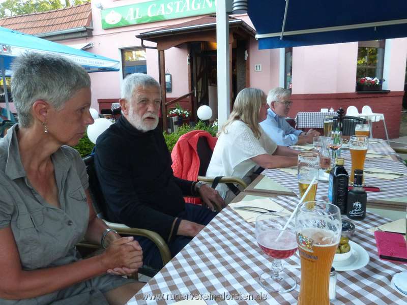 Gut, dass wir heute keine Umwege gefahren waren - die Rücktour war doch recht warm und das Timing passte gut, so dass wir abends pünktlich zum reservierten Tisch bei unserem Italiener eintrafen, bei diesem Wetter natürlich draußen auf der Terrasse. Eine schöne Berlin-Tour nahm ihr Ende. Noch einst in Berlin wohnend hatte ich selten so angenehm in Berlin gerudert wie diesmal. Hat was, wenn alle anderen arbeiten müssen und man wochentags die herrlichen Gewässer der Stadt befahren darf. Wiederholung nicht ausgeschlossen - wo Betten und Boote zu finden sind, wisst Ihr ja, Ihr müsst nur mitkommen wollen :-)