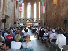 Sonntagmorgen - nach dem Frühstück verabschiedeten sich Andy und Martin zur Heimreise. Wir gesellten uns zum Festakt des DRV in der Johanniskirche zu den Ehrungen im Rahmen des Fahrtenwettbewerbs. Besondere Freude, als unter den über 70 teilnehmenden Vereinen des WRT drei benannt wurden, die jeweils ein paar Skulls per Los gewonnen hatten - der RV Dorsten war dabei und Skulls können wir gut gebrauchen. Danke an den DRV und die uns holde Losfee!