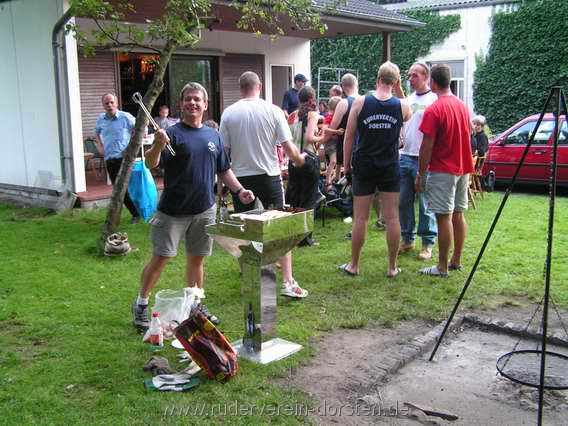 Hinter jeder großen Veranstaltung steckt entsprechend viel Organisation. Während der Vorstand schon in den langfristigen Vorbereitungen des Festes Einsatz beweist, sind es am Tag X viele der Mitglieder, die alles zuverlässig "über die Bühne schaukeln". Wenn ich hier mit Namen anfange, muss ich glatt welche übersehen, lassen wir das. Aber an Start und Ziel, im Schiedsgericht auf dem Wasser, in den Bierwagen in der Stadt, am Kaffee- und Kuchen-Buffet im Vereinsheim, am Würstchengrill und am Steg waren viele emsige Helfer im Einsatz. Ich denke, wir haben das zusammen wieder mal ganz gut hinbekommen.